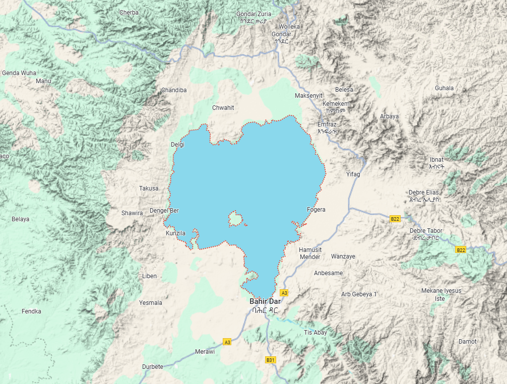 Lake Tana is the largest single lake in Ethiopia and its surface area is about 2156 square kilometers. The Lake is located at an altitude of 1788 meters on the north central plateau of Amhara region.
